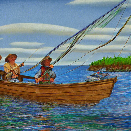 As they traveled through time, the children saw fishermen casting their nets and catching lots of fish.